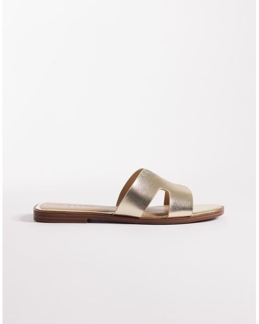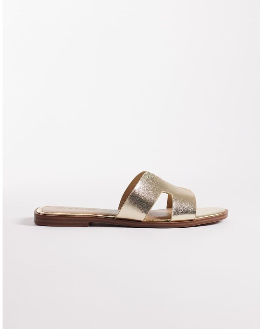 Strappy Flat Sandals With Gold-tone Embellishment - Metallic