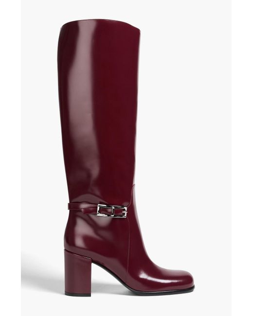 - Buckled Glossed-leather Knee Boots