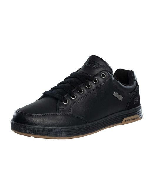 The Skechers Cavell Sparkman Waterproof Trainers combine innovative technology and sleek design to offer all-weather comfort. The seam-sealed waterproof build ensures your feet stay dry even during outdoor activities or wet conditions, making these trainers a versatile choice for all seasons. Featuring the signature Skechers Air-Cooled Memory Foam, the insole delivers exceptional cushioning and breathability, reducing fatigue over long periods of wear. With a classic fit, these trainers are engineered to provide the perfect balance between support and flexibility. The cushioned collar enhances comfort, offering a snug feel around the ankle for added stability. Branding on the side and tongue not only reflects the premium quality of Skechers but also adds a touch of style to these highly functional trainers. Ideal for both everyday wear and outdoor adventures. Colour: black