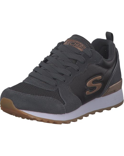 Flexible rubber traction outsole Skechers logo details Skechers air-cooled memory foam Shock-absorbing jogger style midsole Lightweight running sole Mesh top panel for cooling effect Side and heel overlay panels.