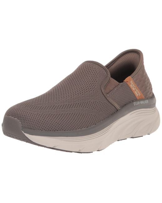 Skechers Hands free slip-ins for an easy fit Exclusive heel cushion keeps your foot securely in place Relaxed fit for a roomy comfortable fit on the toe and forefoot Skechers Air-cooled memory foam cushioned comfort insole Made with 100% vegan materials.