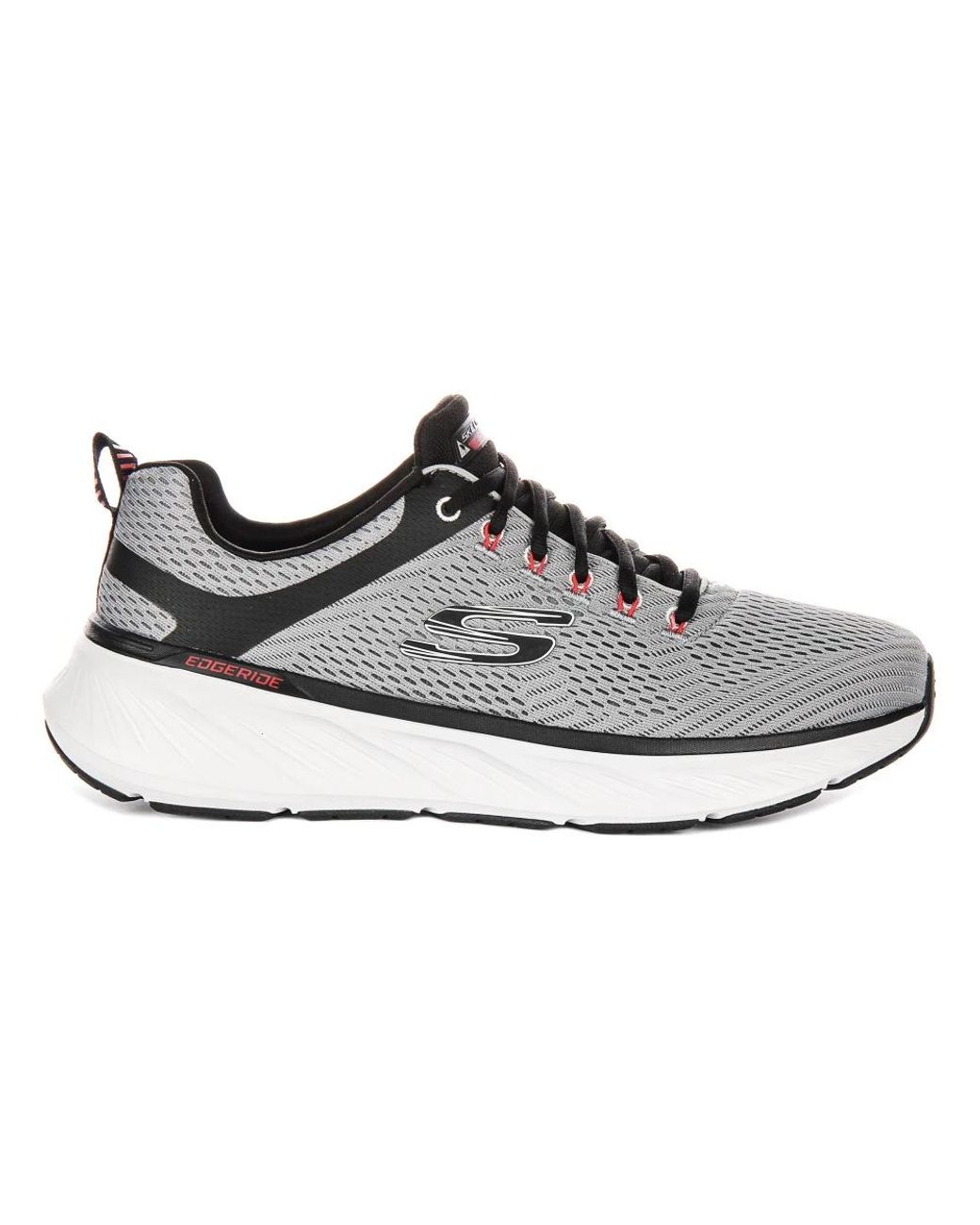 Shop the Skechers Edgeride Conten In Charcoal Black Trainers for Men, featuring shock-absorb technology and mesh fabric. Colour: grey