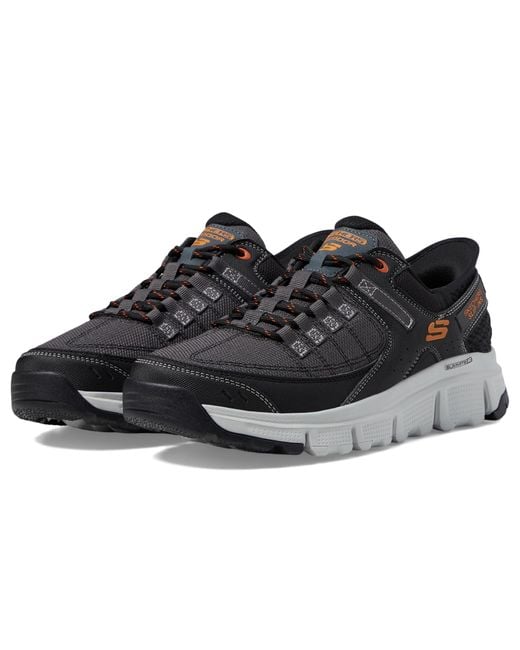 Step up your outdoor tech style wearing Skechers Summits AT - Upper Draft. This modern outdoor lace-up features a durable mesh upper with synthetic overlays A super flexible trenched traction outsole Skechers Memory Foam cushioned comfort insole Durable mesh lace-up with synthetic overlays.