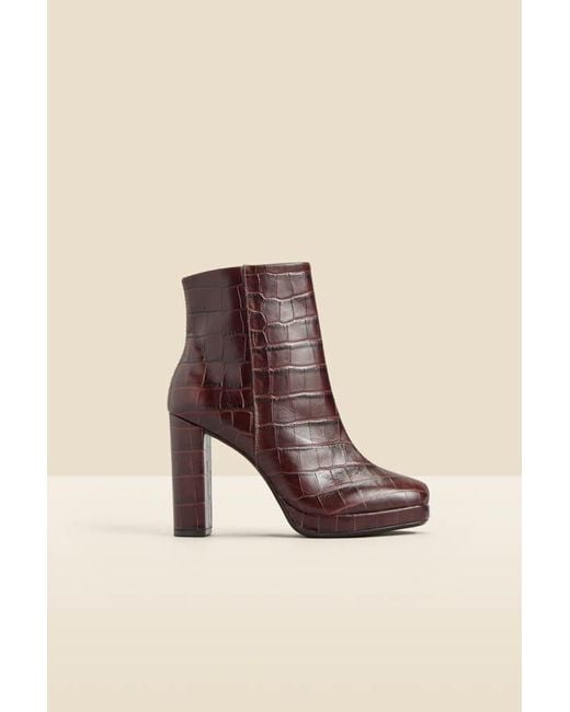 - Chocolate Croc Leather Block Heel Platform Ankle Boot