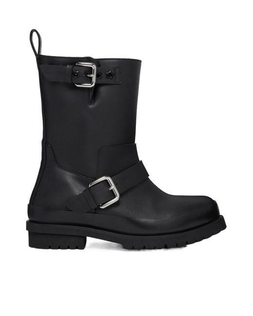 Women's Black Trace Buckle-Strap Biker Boots