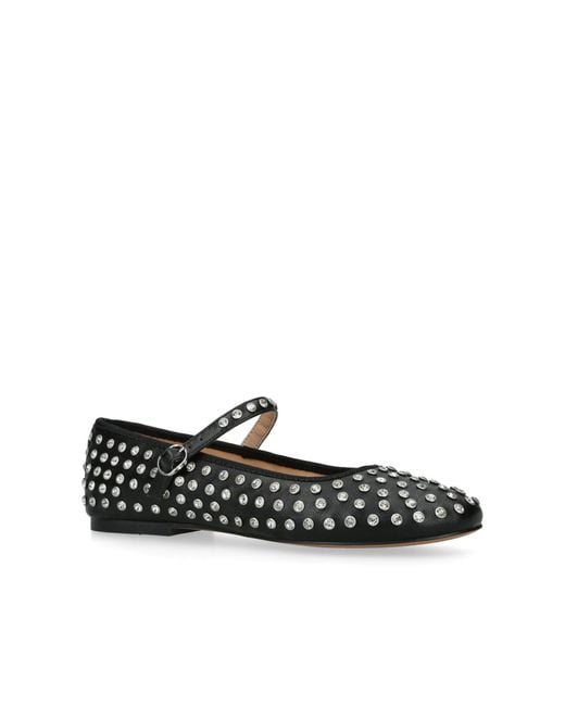 Women's Black Leather Vinetta Rhinestone Ballet Flats