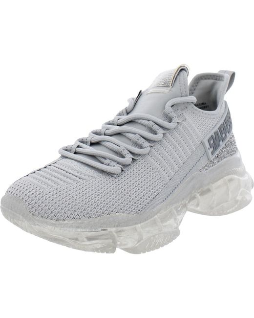 Steve Madden Features a knit upper combined with vegan suede and stud embellishments, blending style with ethical materials. Embossed strap detail adds a touch of sophistication to the sleek silhouette. Fashion-forward sneaker showcasing a monochromatic color palette and trendy texture-blocked design. Elevated on a shiny sculpted sole with a 1.75 inch heel height, offering both height and comfort for all-day wear.