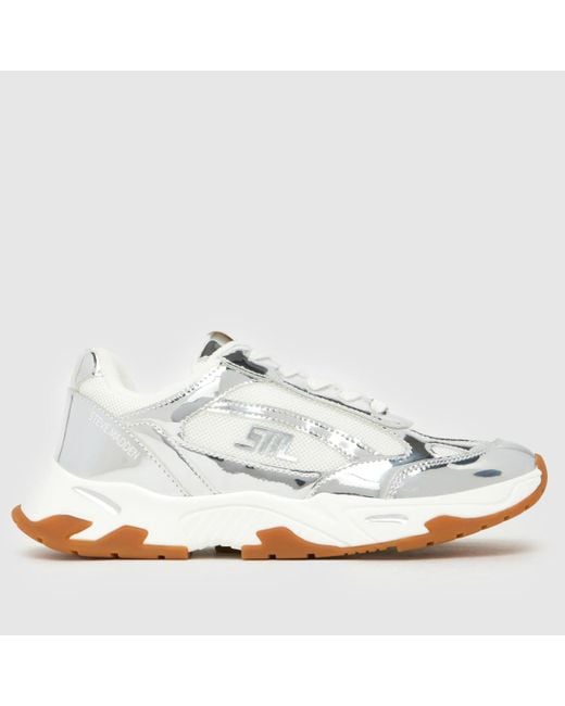 New from Steve Madden are the Sneakpeak trainers! These chunky trainers feature a white suede and silver man-made upper for a unique look. A chunky sculpted midsole and a contrasting gum sole unit complete this must-have look! Colour: white