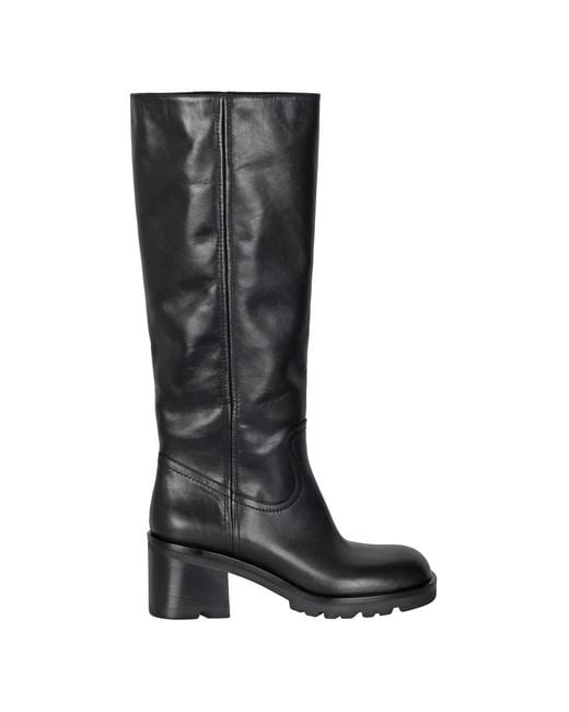 Elevate your style with these Strategia leather high boots for women. Featuring a round toe and a sleek design without a zipper, these boots have a shaft height of 51 cm and a comfortable 7 cm heel height. Crafted from 100% leather with a leather insole and rubber sole, these boots offer both style and durability. Colour: black