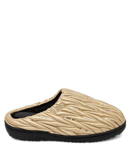 Gold-tone quilted sequin embellishment slip-on style round toe flat sole Size: 37.5. Gender: Unisex. Material:Rubber/Fabric/Fabric. Colour: white