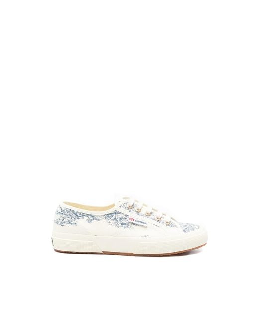 Women's White Toile De Jouy Printed Lace-Up Trainers