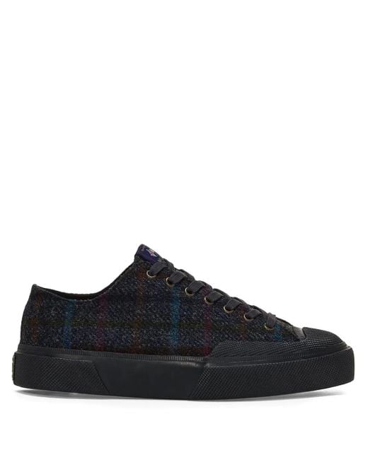 Black wool front lace-up fastening checked pattern round toe branded insole rubber sole Size: 42. Gender: Male. Material:Rubber/Wool/Cotton. Colour: black