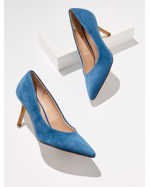 Women's Blue Sasha Suede Pointed Toe Court Shoes