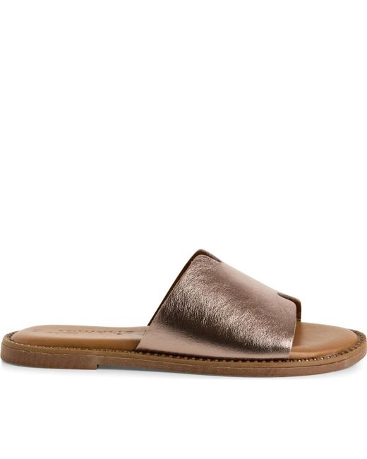 Elevate your summer style with these Tamaris sliders in brown. Crafted with leather upper and inner lining, these flat sandals are perfect for adult women. Product Code: 1-27135-42 915. Manufacturer: Wortmann Verwaltungs Gmb H, Germany. Shop now at tamaris.com.