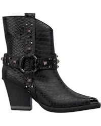 Go to Wolf & BadgerThe Bronx boots in black croco-embossed leather reinterpret Western attitude with a touch of bold glamour. Accented with gold hardware and a signature harness strap, they stand out while remaining effortlessly wearable. A