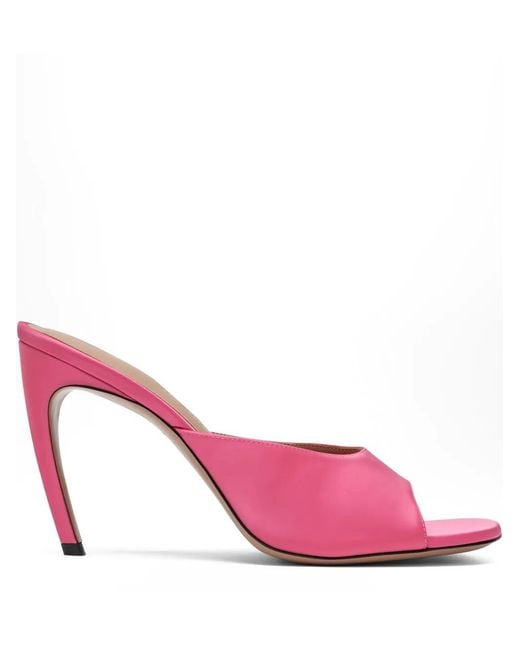 Warm fuchsia heeled open toe slip-on style stiletto heel Size: 40. Gender: Female. Material:Polyester/Goat Skin/Bovine Leather. Colour: pink