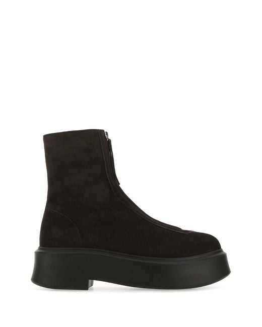 Dark Brown Suede Ankle Boots from The Row Colour: black