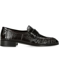 Go to SSENSECrinkled eel leather loafers. · Topstitching and gathering at moc toe · Strap at vamp · Suede lining · Stacked leather block heel · Hand-painted leather sole with rubber injections · Heel: H1 Supplier color: Brown Colour: black