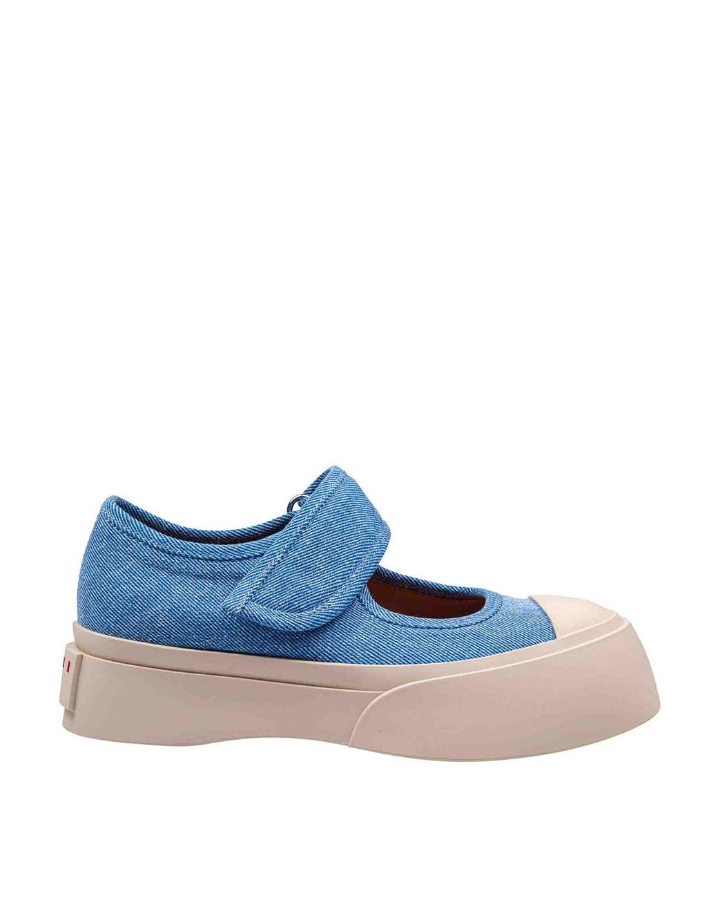 Mary Jane Pablo trainers in denim thick adjustable velcro strap with Marni lake on the back internal height Colour: blue