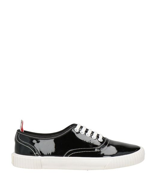THOM BROWNE. low-top trainers, patent leather, plain colour, brand logo, lace-up, round toe, leather lining, rubber sole, contains non-textile parts of animal origin. Leather.