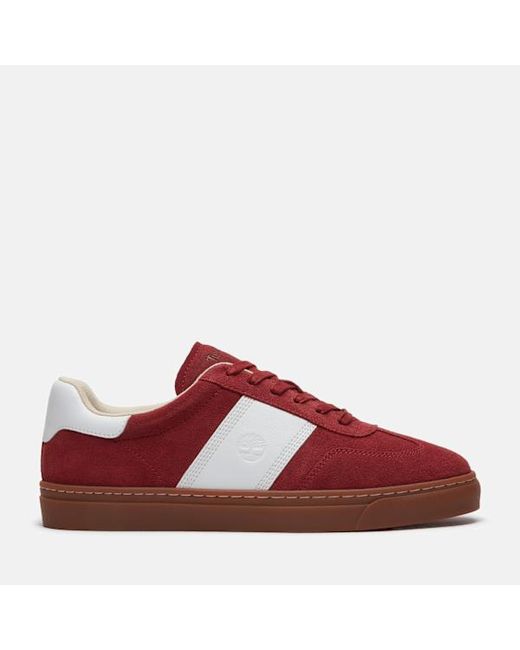 The Lisbon Street Trainer pairs Premium Timberland® Leather with 100% cotton laces for a secure, classic fit. Inside, a ReBOTL™ fabric lining contains at least 50% recycled plastic, offering a cushioned feel. Also, a grippy rubber outsole helps deliver traction. Colour: red