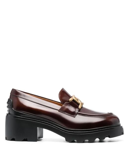 Walnut brown calf leather gradient effect chain-link detailing apron toe mid block heel rubber lug sole Size: 37.5. Gender: Female. Material:Leather. Colour: brown