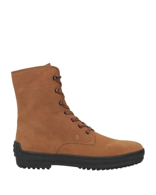 TOD'S. lace-up ankle boots, suede effect, plain colour, no appliqués, leather lining, lace-up, round toe, flat, rubber sole, contains non-textile parts of animal origin. Leather.