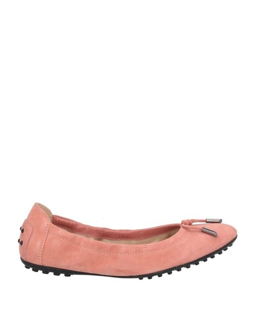 TOD'S. suede, laces, plain colour with appliqués, leather lining, elasticised gores, round toe, flat, pebbled sole, contains non-textile parts of animal origin, ballet flats. Leather.