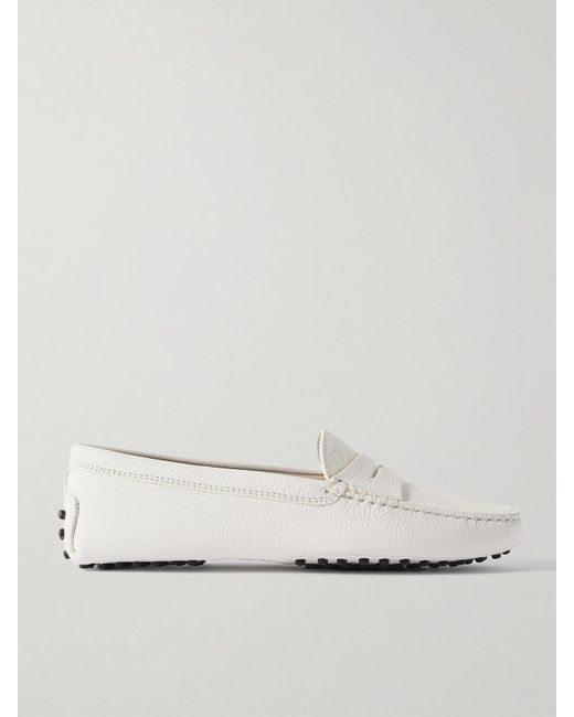 Tod's beautifully crafted 'Gommino' loafers first became popular as driving shoes due to their practicality. This pair has visible hand stitching, penny slots and rubber pebbles on the outsole that stop any slips. A hot-stamped monogram can be seen at the front. Colour: natural