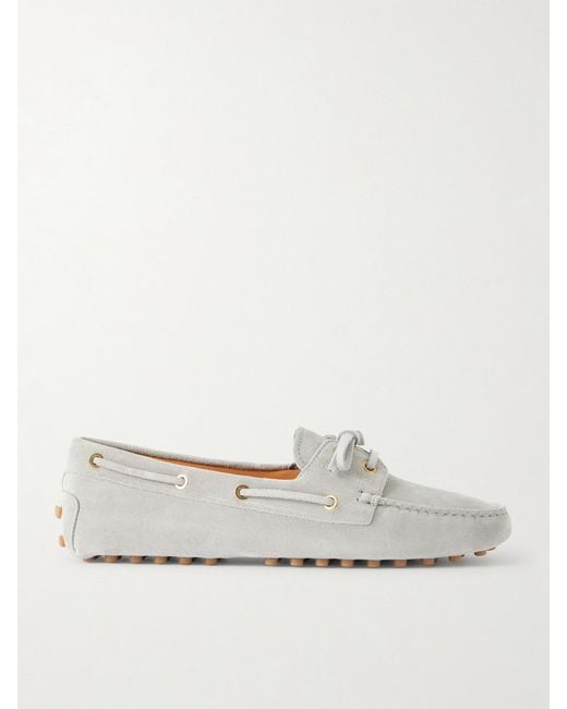 Tod's 'Gommino' boat shoes will stand the test of time for years to come. They've been crafted in Italy from suede with accompanying ties and signature pebbled soles, offering plenty of grip. Colour: white