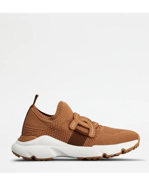 Trainers in stretch technical mesh, with leather chain accessory, grosgrain details and macro rubber sole Colour: brown