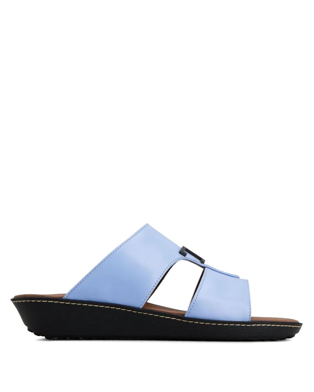 Light blue leather upper T-bar detail wedge heel stitched detailing rubber sole Size: 7.5. Gender: Male. Material:Rubber/Calf Leather/Calf Leather. Colour: blue