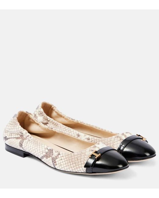 - Snake-Effect Leather Ballet Flats