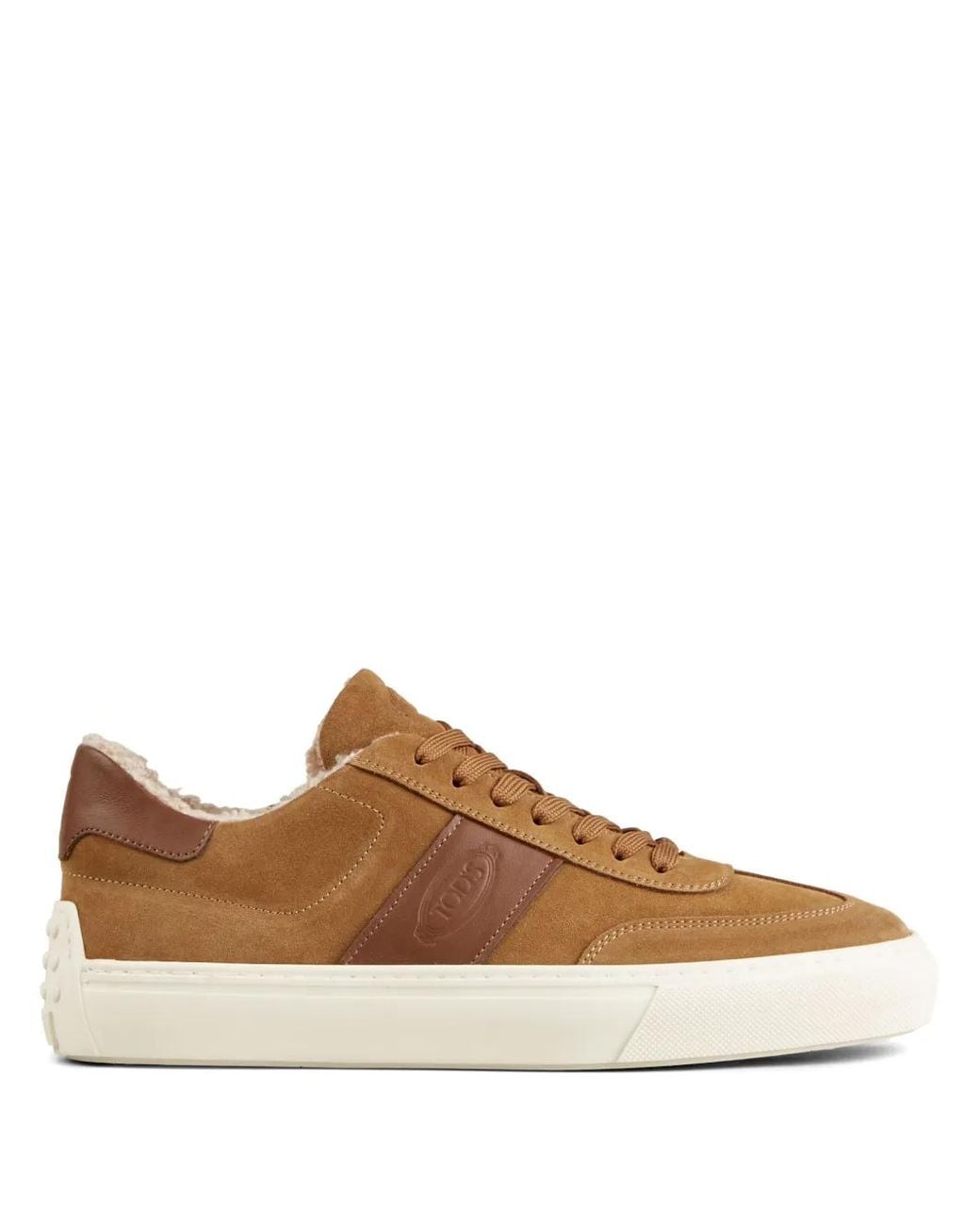 Cognac brown suede leather trim shearling lining branded heel counter debossed logo to the side logo-debossed tongue front lace-up fastening round toe flat rubber sole Size: 7. Gender: Male. Material:Suede/Rubber/Sheep Skin/Shearling. Colour: brown