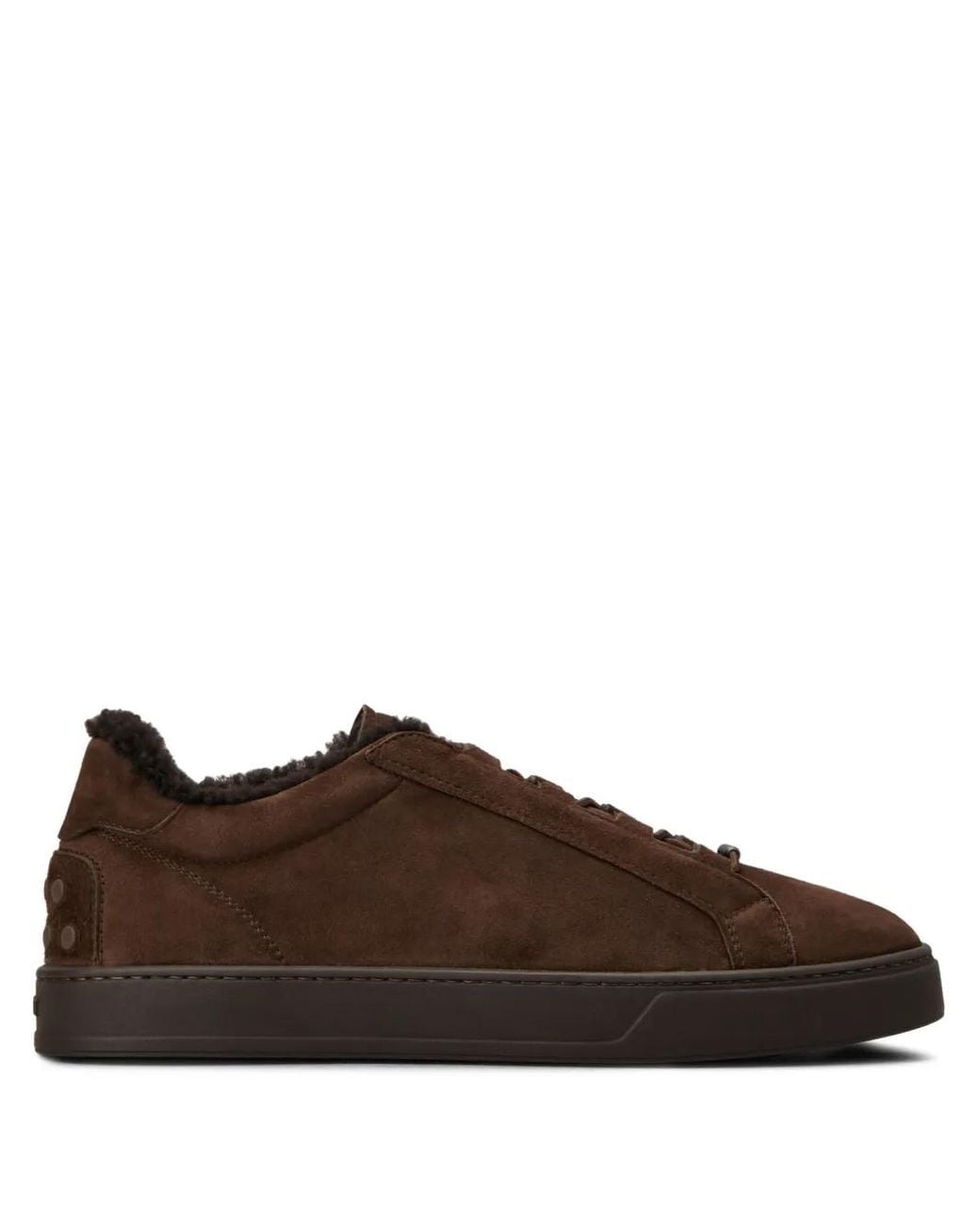 Chocolate brown front lace-up fastening flat sole branded insole round toe Size: 8. Gender: Male. Material:Goat Skin/Rubber/Sheep Skin/Shearling. Colour: brown