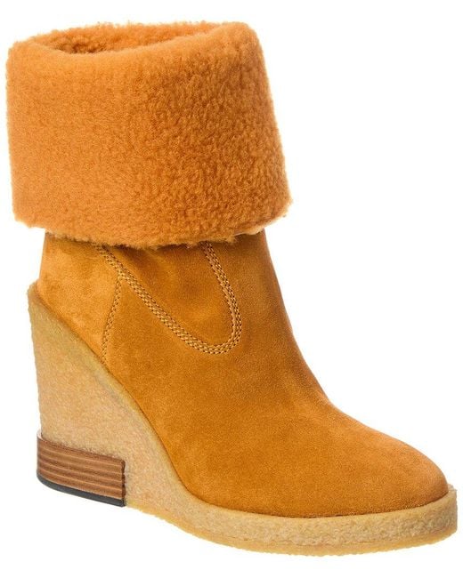 About the brand: Timeless designs, hand-crafted in Italy. Please note: Size selections are European. For US conversions, please reference size chart. Made in Italy Zeppa Para Suede Boot in orange suede with shearling foldover design Smooth leather insole Rubber sole 4.1in heel Our products are 100% genuine. In some cases we purchase merchandise from trusted independent suppliers and not directly from the brand owner. In all cases we stand by the authenticity of every product sold on our site.