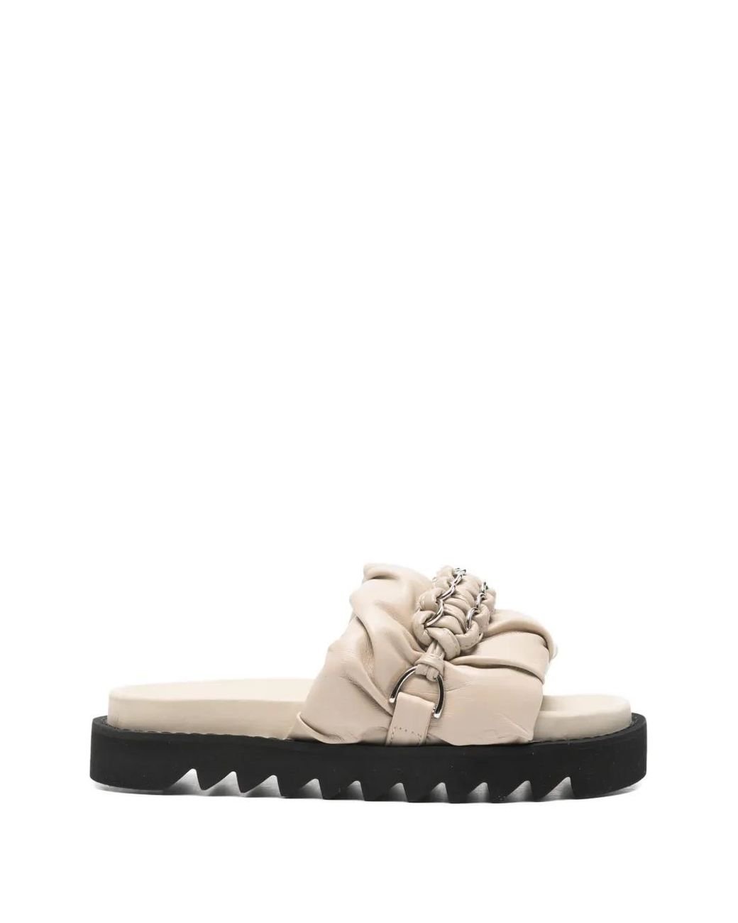 Cream leather upper silver-tone chain ruched detailing slip-on style platform sole This piece comes complete with a protective dust bag. Size: 36. Gender: Female. Material:Calf Leather/Calf Leather/Rubber. Colour: white