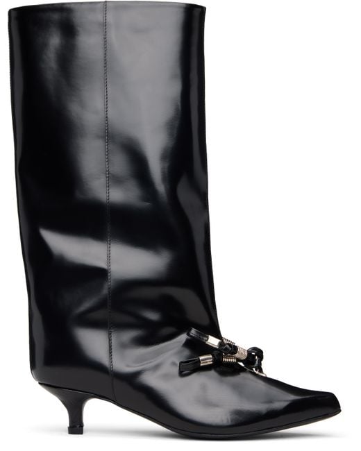 Knee-high polished leather boots. · Pointed toe · Knotted straps with O-rings at vamp · Buffed leather lining · Covered kitten heel with rubber injection · Leather sole · Heel: H1.5 Supplier color: Black Colour: black