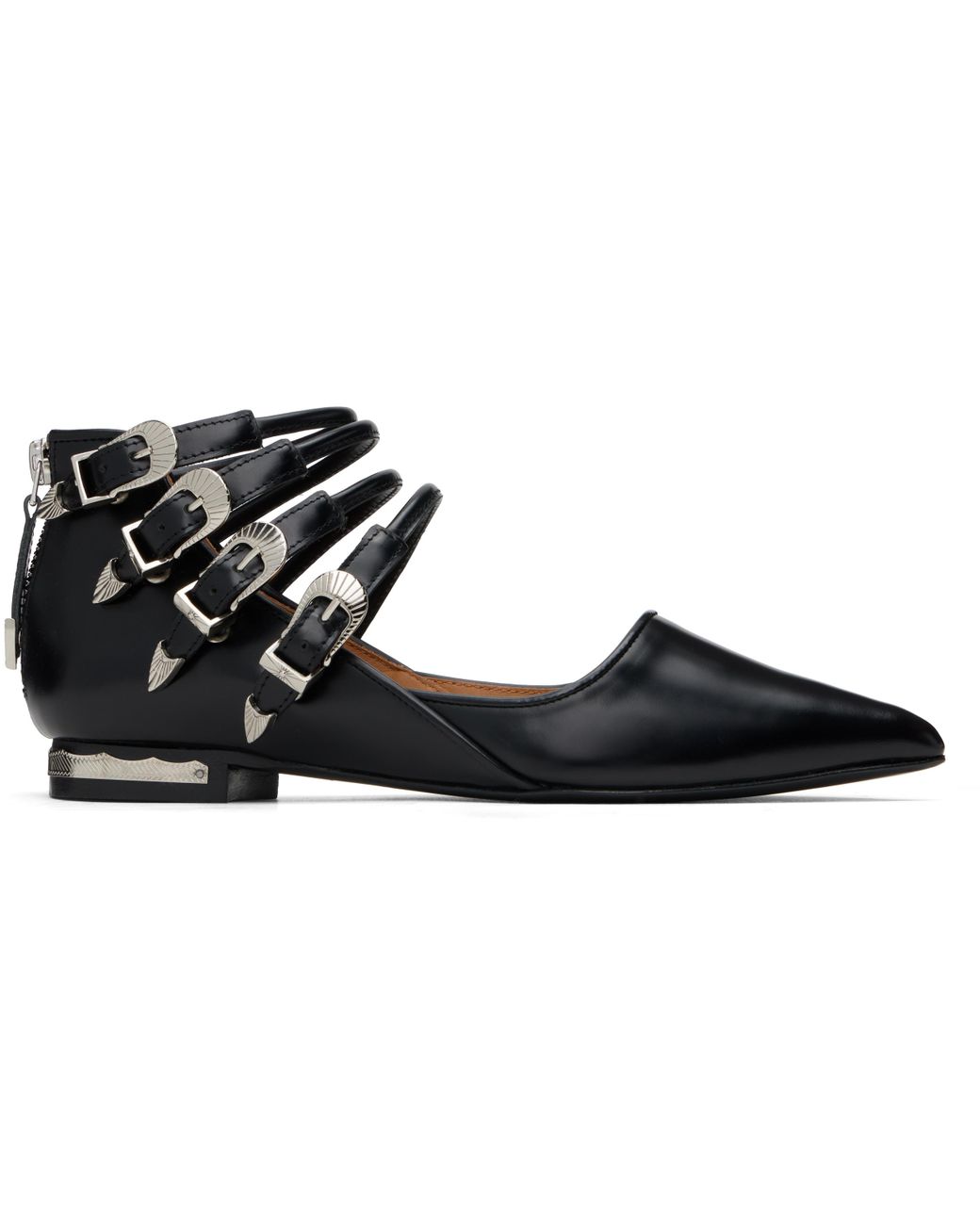 Polished leather ballerina flats in black. · Pointed toe · Pin-buckle straps at vamp · Buffed leather and suede lining · Zip closure at heel counter · Plaque at heel · Stacked leather heel with rubber injection · Leather sole · Engraved silver-tone hardware Supplier color: Black Colour: black