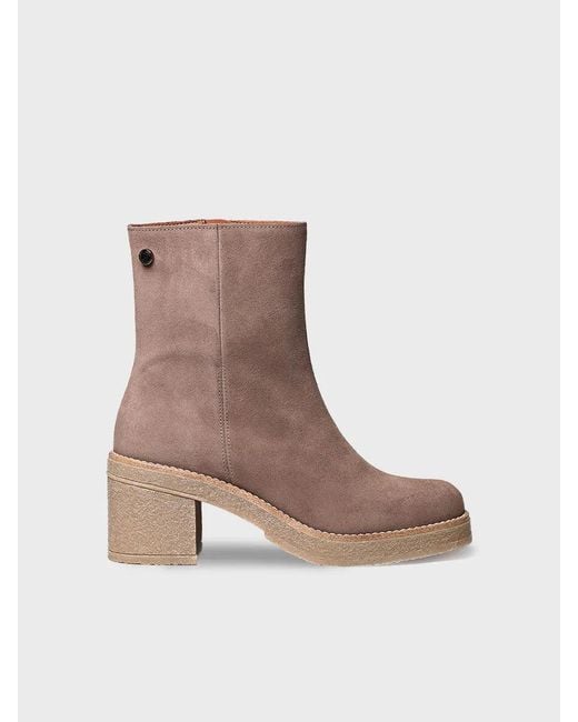 PIANI-SY. This women's boot is a very comfortable model thanks to its wide heel and platform. It has a side zipper that makes it easy to put on. This model fits the usual size; choose a larger size if you are between two sizes. Size: 35, 36, 37, 38, 39, 40, 41 Colour: brown