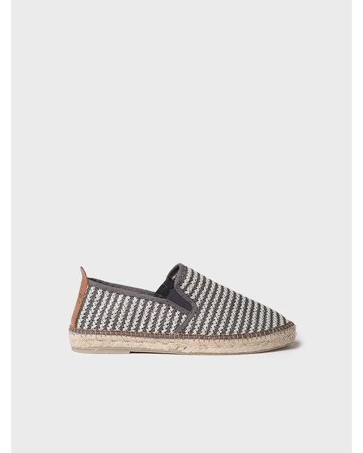 DELVIN. This men's espadrille in mesh is made from fabric in striped tones. The outer sole is made of jute. The sole base is made of non-slip rubber, and the sole is lined with cotton fabric. This design is hand-stitched in Spain.The side elastics make them fit perfectly to the foot. Size: 39, 40, 41, 42, 43, 44, 45, 46, 47 Colour: white