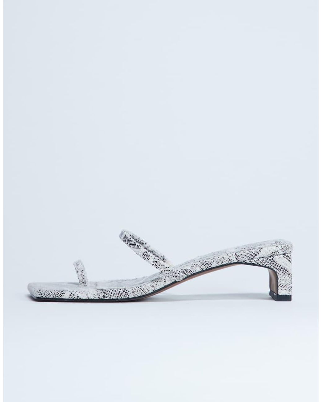 Shoes by Topshop These Ivy sandals are crafted from a textured fabric and feature a faux-snake design. This slip-on style has an open toe and a low block heel. Colour: white