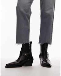 TOPSHOP Women's Black Maddy Leather Western Boots