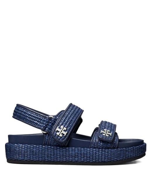 Navy blue adjustable straps logo embellishments platform sole cushioned footbed Size: 5.5. Gender: Female. Material:Viscose/Nappa Leather/Raffia/Nylon/Calf Leather/Rubber. Colour: blue