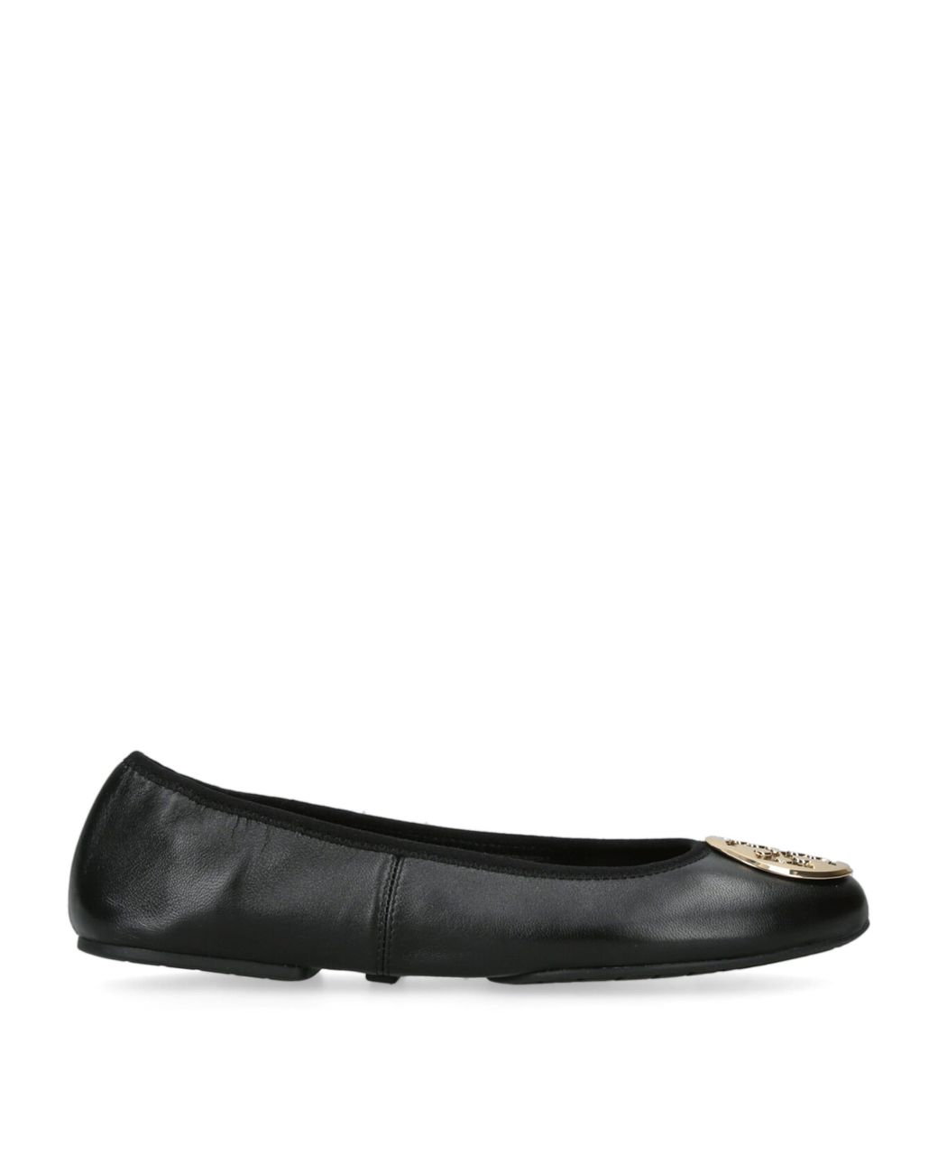 Elegance in motion takes on a whole new meaning courtesy of Tory Burch and the Reva Travel ballet flats. The malleable leather construction folds in half to easily fit into your carrier. Complete with the brand's signature gold-tone medallion and a cushioned footbed, this style is the perfect balance of timelessness and comfort. Colour: black