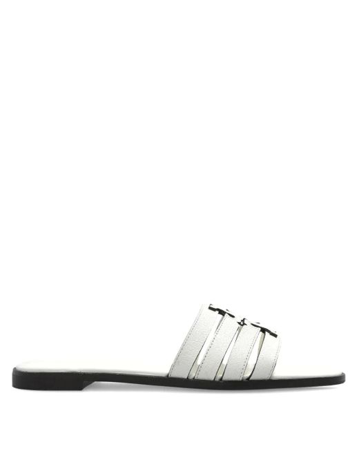 White open toe silver-tone logo plaque flat sole Size: 4.5. Gender: Female. Material:Goat Skin/Nappa Leather/Rubber.