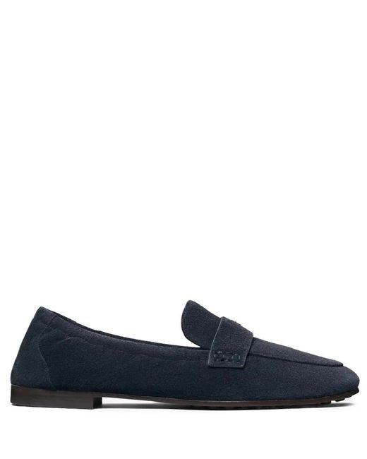 Tory Burch Ballet Loafer blends the flexibility of a ballet slipper with a loafer silhouette, delivering cushioned leather comfort and the signature Double T hardware for refined everyday wear. Key attributes: Blue | New navy | Suede | Cushioned leather footbed for comfort | Rubber-tread outsole for traction | Flexible, ballet-inspired construction | Slip-on construction | Ruched sides secure the foot | Dust bag included | Metal Double T logo stud at vamp | Hand-stitched keeper strap | Hand-painted edges | Notched vamp with round apron toe | Dimensions & fit: True to size | Composition & care: Suede upper | Cushioned leather footbed | Napa leather lining | Leather and rubber sole | Metal logo hardware Colour: blue