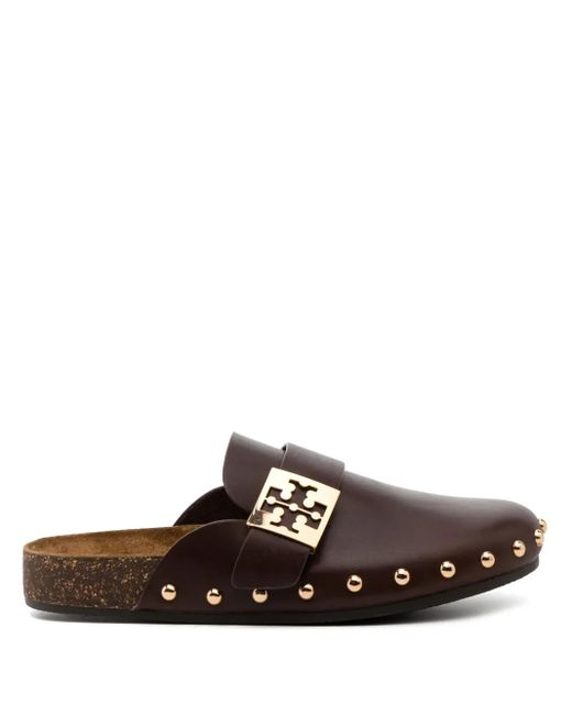 Leather deep mocha brown gold-tone hardware stud detailing round toe branded leather insole slip-on style Size: 6. Gender: Female. Material:Leather/Leather/Rubber. Colour: brown