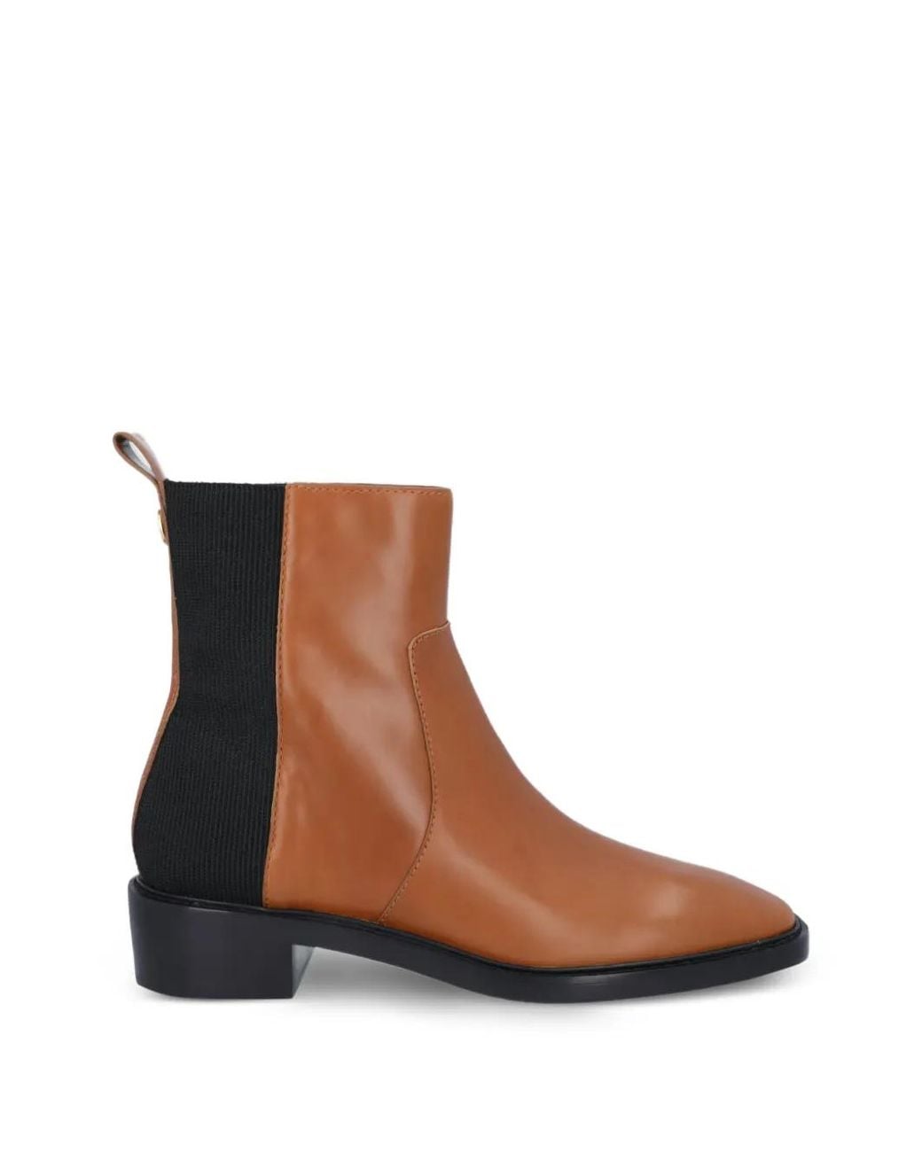 Brown round toe pull tab elasticated side panels block heel leather sole Size: 7. Gender: Female. Material:Calf Leather/Fabric/Calf Leather/Rubber. Colour: brown