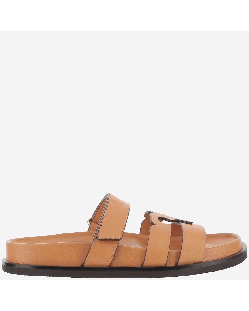 Leather sandals Open toe Velcro strap closure Nappa leather lining Rubber sole Beige Made in Indonesia Composition: 100% leather Size 8 US.